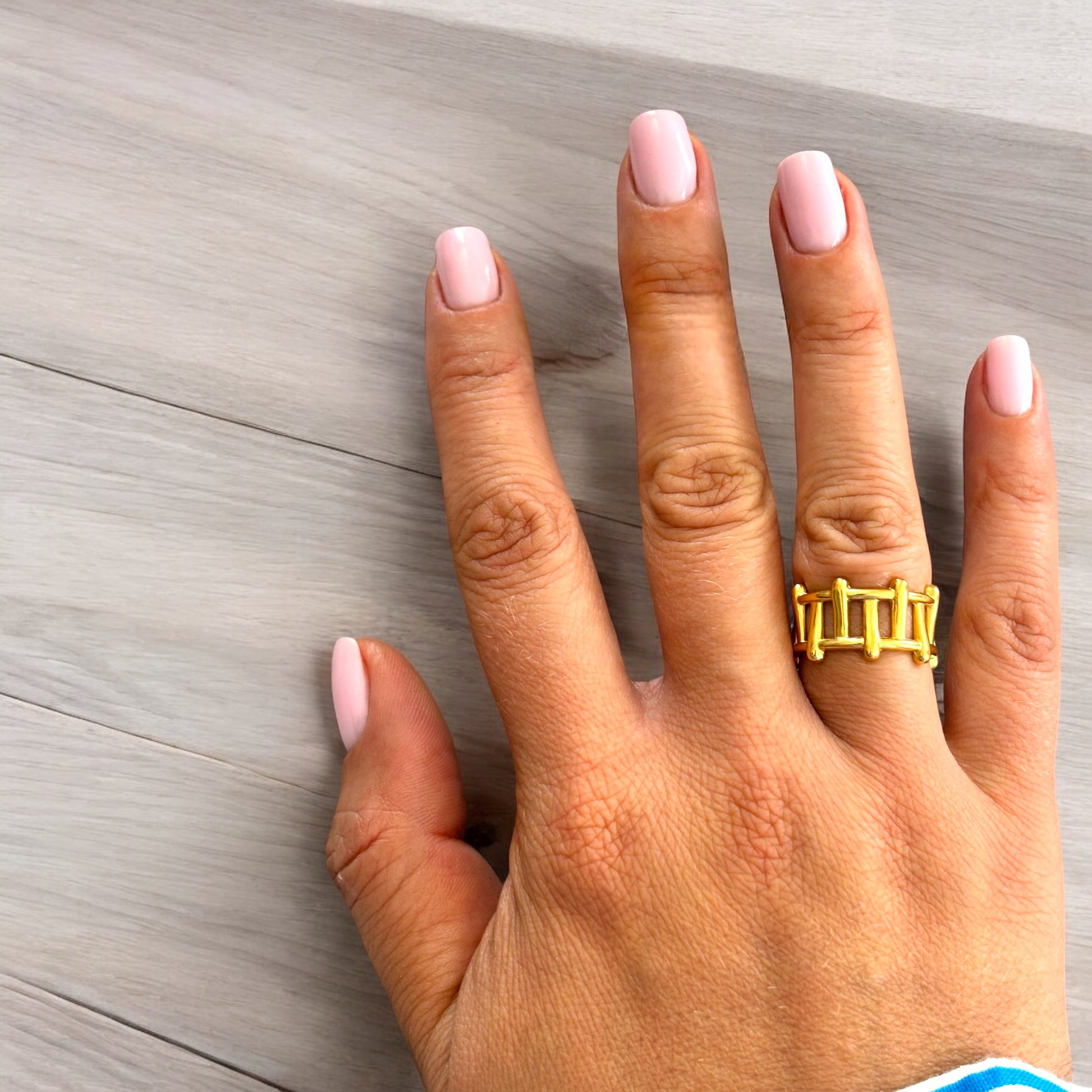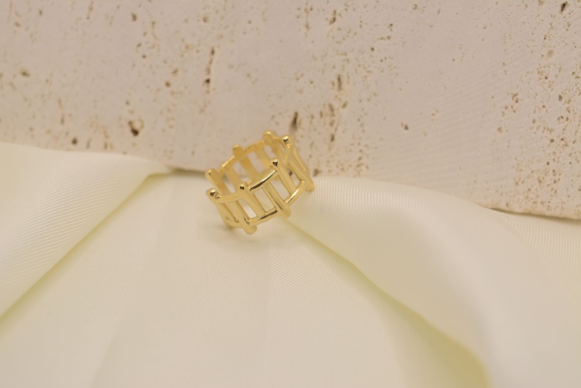 Découvrez notre bague Kaya en acier inoxydable doré, avec un design moderne et réglable pour un ajustement parfait. Profitez de sa résistance et de son élégance grâce à son modèle grille unique.
