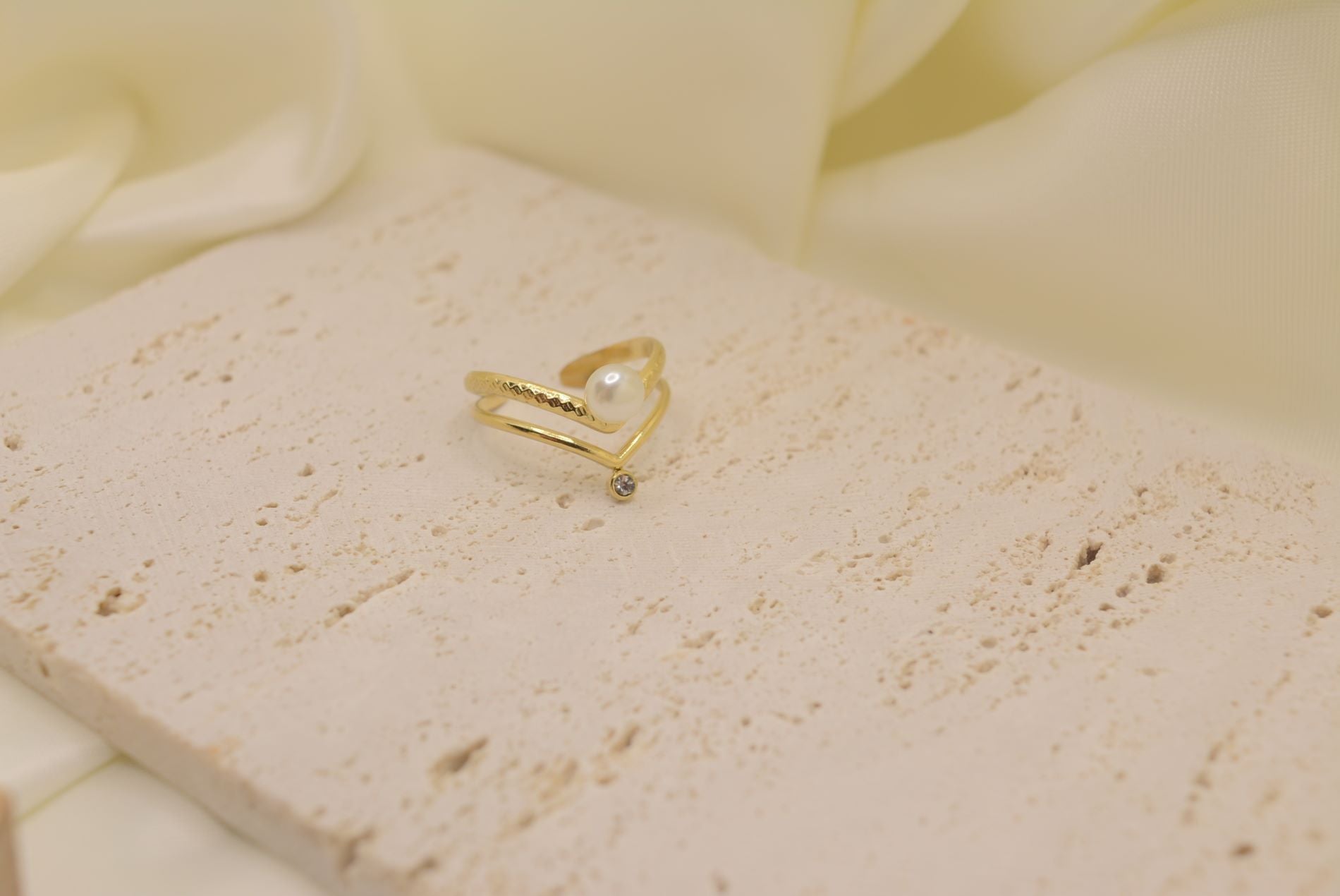 La bague Lydia est un accessoire élégant et polyvalent qui apportera une touche de glamour à votre look. Fabriquée en acier inoxydable, elle est durable et résistante à l'usure. Son design double V avec une perle et des strass ajoutent une touche de sophistication à cette bague ajustable. Parfaite pour toute occasion, elle sera un ajout précieux à votre collection de bijoux.