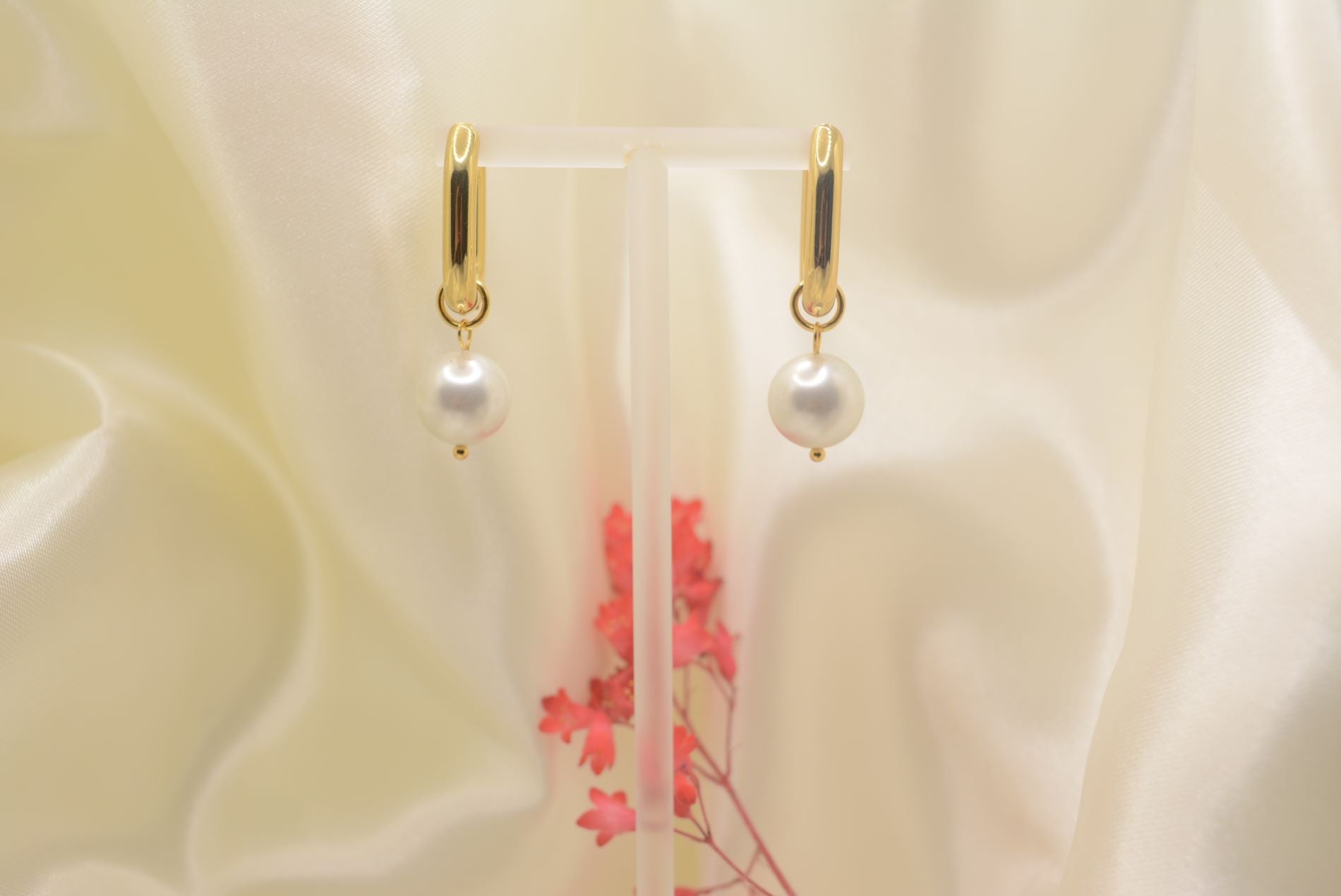 Boucles d'oreilles dorées en acier inoxydable, élégamment conçues sous forme de créoles. Chaque boucle est ornée d'une perle pendante, ajoutant une touche de sophistication et de charme à l'ensemble. Idéales pour toutes les occasions, ces boucles d'oreilles allient durabilité et style intemporel.