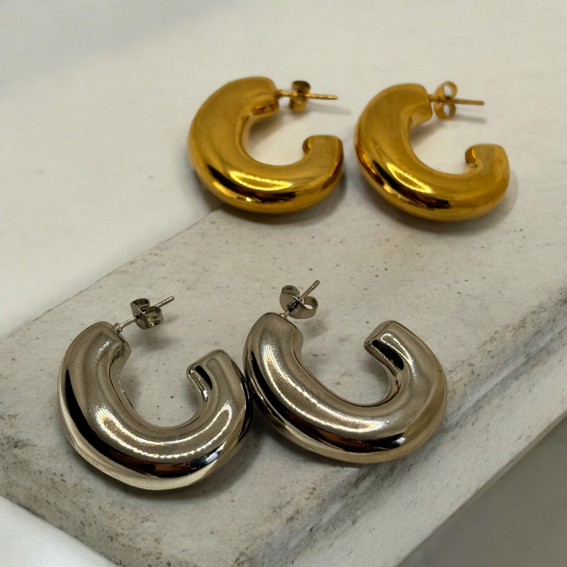 Nos boucles d'oreilles créoles épaisses en acier inoxydable ouvertes ajoutent une touche tendance à votre tenue. Fabriquées en acier inoxydable, elles sont durables et résistantes à la rouille. Profitez d'un style moderne et élégant avec ces boucles d'oreilles.