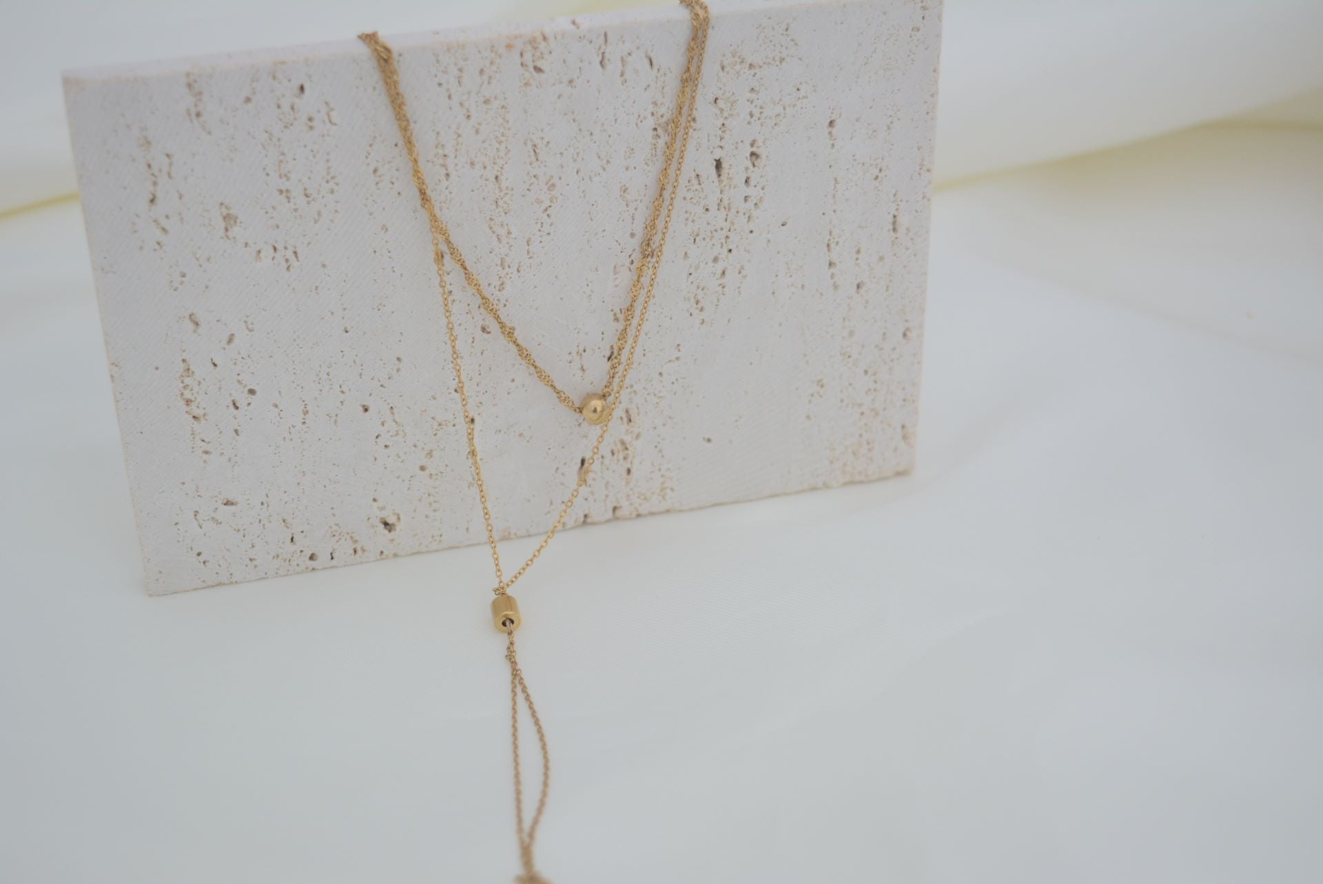 Ce collier en double chaine doré est un ajout élégant à toute garde-robe. Fabriqué avec de l'acier inoxydable, il est à la fois solide et élégant. Son style en Y offre une touche unique qui complètera parfaitement n'importe quelle tenue.